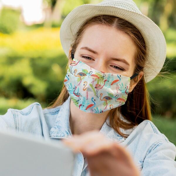 • A flamingó mintás maszk mindkét rétege 100%-ban pamut.