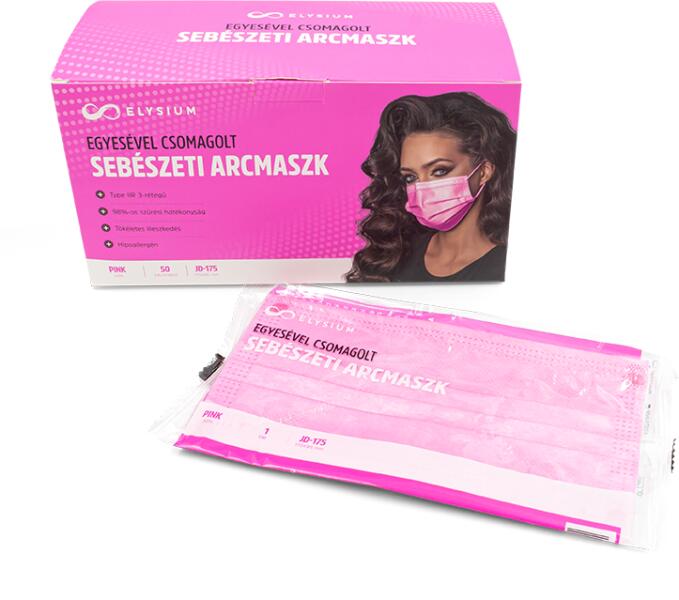Elysium type IIR 3-rétegű egyesével csomagolt felnőtt sebészeti arcmaszk - 50 db - Pink - Felnőtt