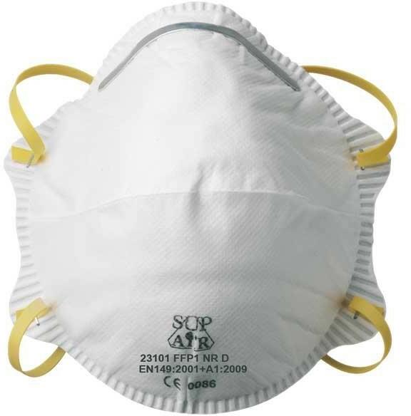 inert porok, valamint nem veszélyes szilárd és folyékony részecskék ellen (pl. cement, cellulóz, porcelán-kaolin, gumi, vasreszelék, szénpor, növényi olaj, liszt) D jelölése igazolja, hogy a részecskeszűrő megfelelt a dolomit teszt eredményének, kis légzési ellenállás megtartása mellett garantálva az eltömődés nélküli, hosszabb idejű használhatóságot kónusz forma, alumínium orrcsipesz, kényelmes felfekvést segítő szivacscsík; nem allergén külső pp-SMS, belső poliészter réteg, elektrosztatikus polipropilén közszűrő felhelyezés két rugalmas gumipánttal névleges védelmi tényező: 4 EH SÚLY: 8 g EU szabvány: EN149:2001 + A1:2009