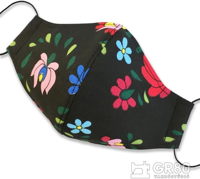 GR80 Kalocsai mintás, 100% pamut textil maszk (szájmaszk / arcmaszk), fekete