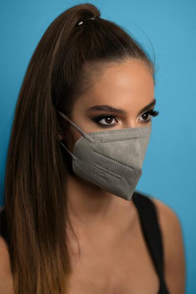 Jiada 7-rétegű FFP3 CE 0370 szelep nélküli fülpántos szürke maszk - 20 db - szürke