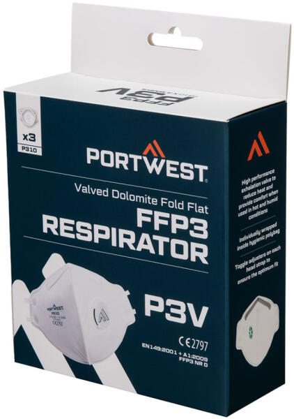 Portwest FFP3 szelepes Dolomit összehajtható lapos maszk (3 db) (P310WHR)