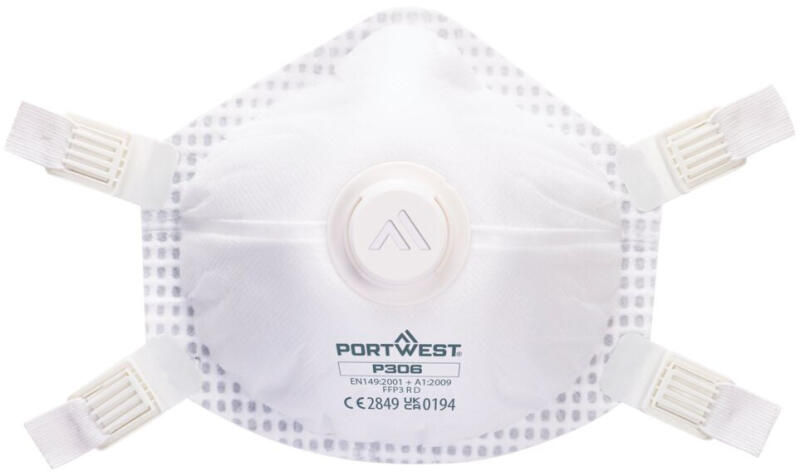 | Szabvány | EN 149:2001 +A1:2009 FFP3 (R D) |