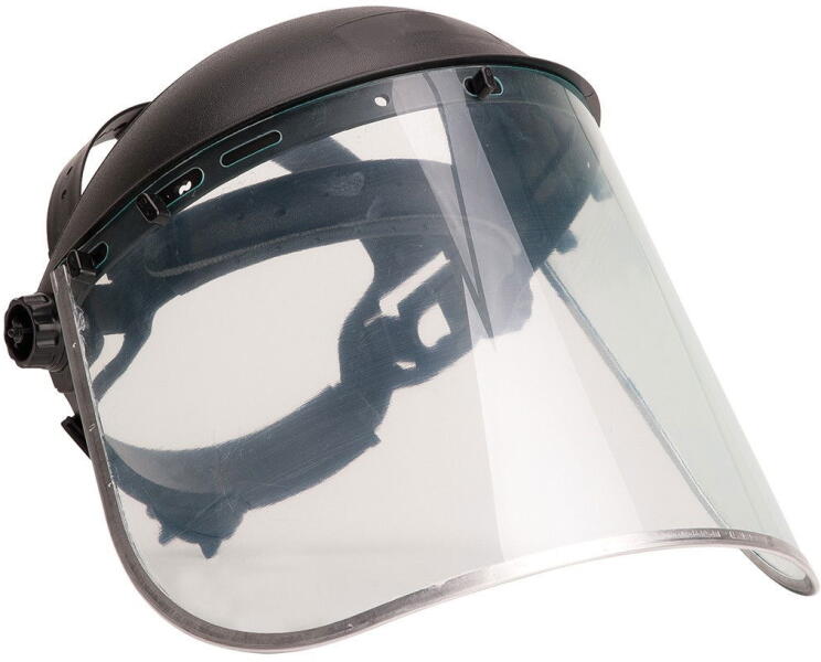 Alapanyag : polikarbonát, alumínium, 320g.   Termékválaszték : Arcvédők  Jellemzők llítható arcvédő modell, mely védelmet biztosít fröccsenő vegyszerek, hegesztési behatások és részecskék ellen. Kiváló első és oldalsó védelem, állítási lehetőség. Látómező méret: 20 x 40 cm  Tulajdonságok - UKCA-jelölés folyamatban (Egyesült Királyságban forgalomba hozott termék)- CE minősítés (EU direktíváknak megfelel)- MM - opcionális vizsgálata jelzi az olvadt fémekkel és forró szilárd anyagokkal szembeni ellenállást. - Automatákhoz fejlesztve  Szabványok EN 166 (1 BT 3 9)ANSI/ISEA Z87 +