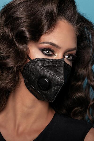 Shining Time FFP2 szelepes, fülpántos arcmaszk - Fekete - 20 db - FFP2