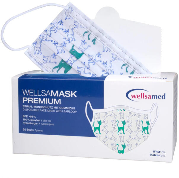 Wellsamask Colour line orvosi maszk 50db - macskák